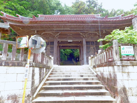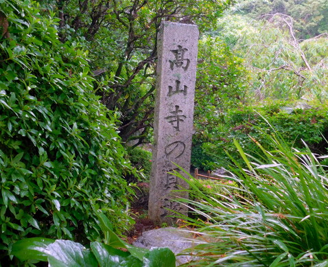 私が高山寺に参拝したこの日は生憎の雨でしたが、朝早かったこともあり、だれもいない境内を存分に撮影することができました。高山寺の伽藍がある高さ30mほどの南面山のふもとに山門があります。現在の山門は昭和六年(1931年)に建立されたものです。