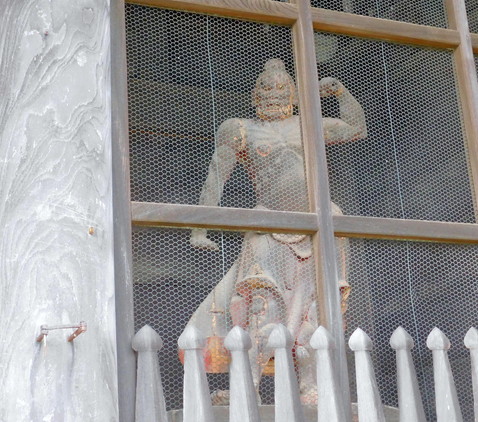 左右の仁王像は、高さ170cmの等身大の木像で、山門が再建されたのと同時期に製作されたもののようです。