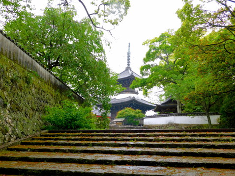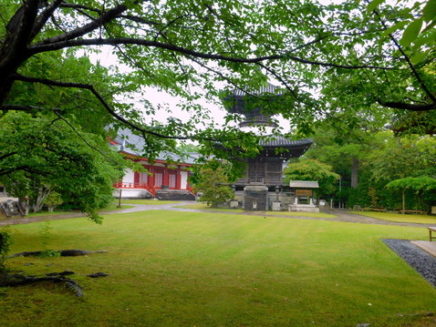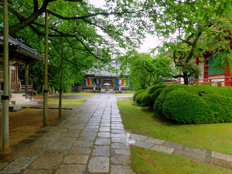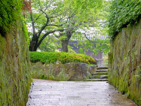 最後までご覧いただきありがとうございました。田辺の高山寺は、熊野三山とは直接関係はありませんが、江戸期にこの地を治めた安藤氏の保護を受けた田辺市街の中心的な寺院であり、その伝説に彩られた歴史と文化財について、ぜひご紹介したかったところです。さらにこの日は、雨に濡れた艶やかな石畳と、しっとりと青みを増した芝生に覆われた広い境内がとても魅力的でした。熊野三山遠征記は、まだまだ続きます。