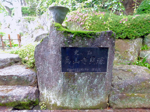 高山寺貝塚は、昭和13年(1938年)に最初に発見された縄文時代の貝塚で、海水産の貝殻からなる近畿唯一のものです。高山寺山の斜面に第一号貝塚、第二号貝塚、第三号貝塚と三カ所存在しています。出土した土器は高山寺式土器と呼ばれ、押型紋(おしがたもん)の尖底(せんてい)土器や撚糸文(よりいともん)土器が特徴的です。昭和45年(1970年)には国の史跡に指定されています。