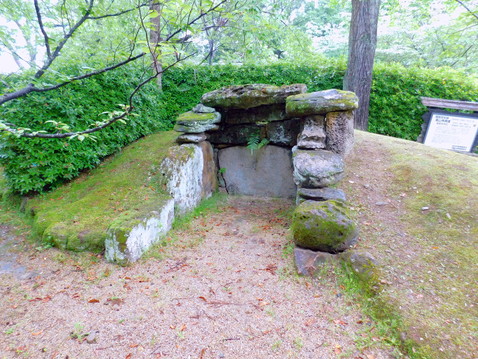 昭和48年(1973年)、宅地造成に際して田辺市元町の蘇生山で見つかった直径15mの円墳(6世紀後半造立と推定)の横穴石室を移転したものです。