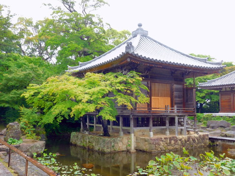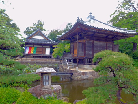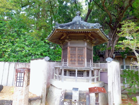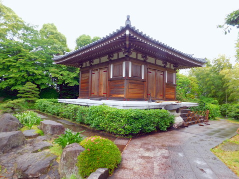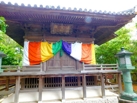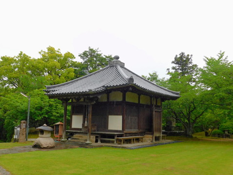 向かって右端に六角堂があります。おそらく聖徳太子に由来する建物と思われますが、詳細はわかりませんでした。