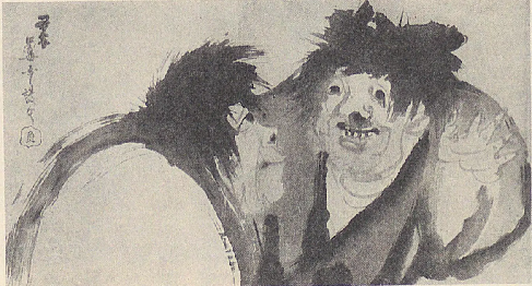紙本水墨寒山拾得図