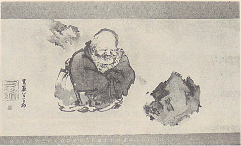 こちらは円山応挙の高弟・長沢芦雪の「紙本水墨寒山拾得図」で、寒山拾得の上半身だけを紙面いっぱいに描いたという珍しい構図です。芦雪は、天明七年(1787年)二月のわずか3~4日の高山寺滞在の間に書き上げたそうです。県の指定文化財となっています。