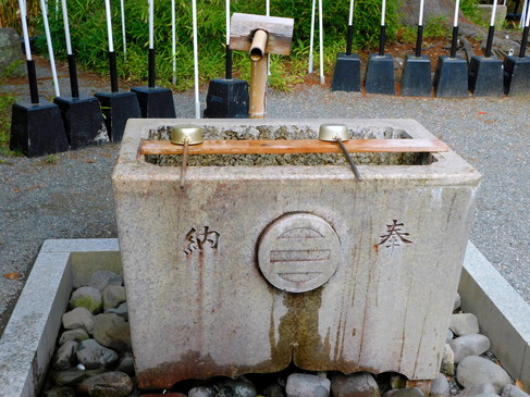 二両引きの紋が刻まれたこちらの水盤は、昭和55年(1980年)に奉納されたものです。