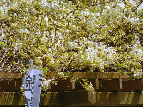 こちらの藤棚は、下に垂れないタイプの白藤です。