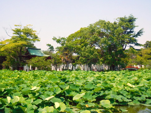 夏には、蓮で埋め尽くされた源氏池に旗上弁財天の小島が浮かびます。