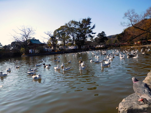 旗上弁財天の境内は、白鳩のテリトリーとなっているようです。