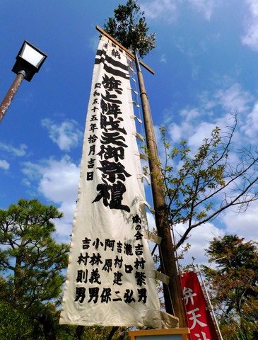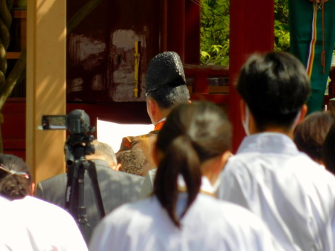 境内が手狭なため、例祭が執り行われている間は人数制限がかけられて、一般の参拝者は橋を渡ることができません。幟旗を奉納すると参列のご案内を頂けます。