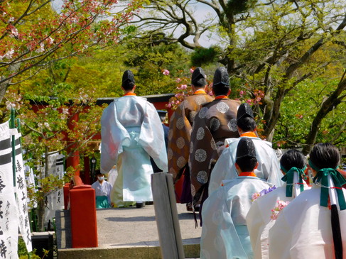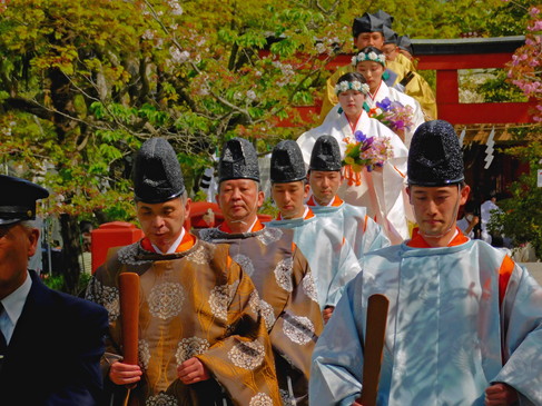 ご神職の皆さんが、赤橋を渡り社殿に向かわれます。