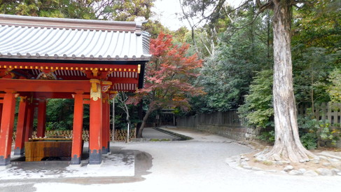 祖霊社の表参道は、手水舎に向かって左脇から西方向に延びます。