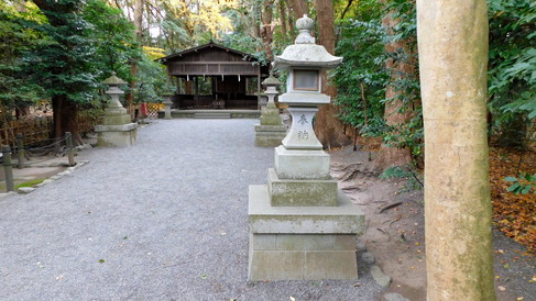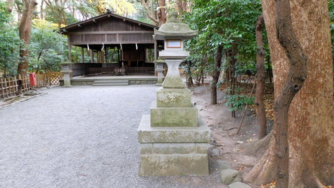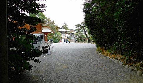 社殿に向かって右手の道を進むと舞殿脇に出る小道が見えます
