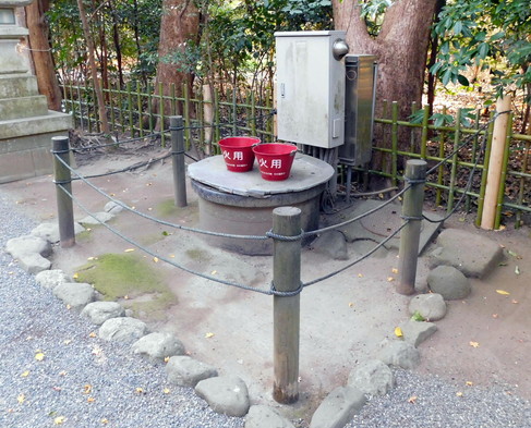 コロナ騒動以降、水が張られていないこちらの水盤には、文化六年(1809年)と刻まれておりますので、鶴岡八幡宮寺の時代の何れかの社殿もしくは仏殿に置かれていたものと思われます。背後の水口は、ずっと新しく令和元年(2019年)に「祖霊社維持会」より奉納されたものです。