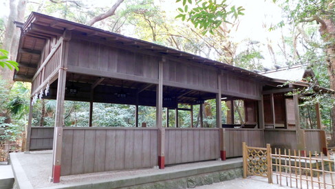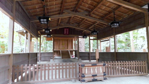 拝殿は、伊勢神宮の古材を拝領し、昭和53年(1978年)に建てられたものです。面積は40平米ほどで、土間床となっています。