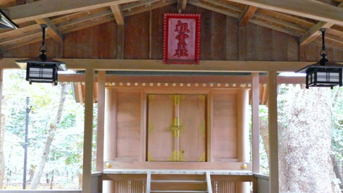 現在の本殿は、平成7年(1995年)に建てられたものです。もともとの本殿は、大船小学校の奉安殿(戦前はどこの学校にもありました)を移築したものでした。本殿の正面に掲げられた鎌倉彫の赤い「祖霊社」の扁額は、祖霊社維持会会員の野村政春氏より奉納されたものです。