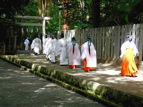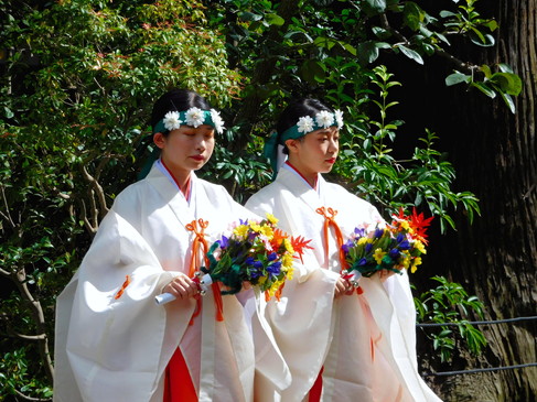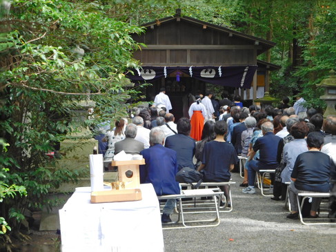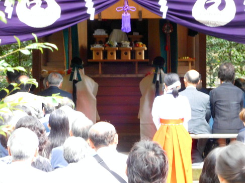 祖霊社の例祭は、春秋二回、巫女二名の舞が奉納される中祭の格式で執り行われます。例祭での玉串奉奠は、参列者全員が行うことになっています。