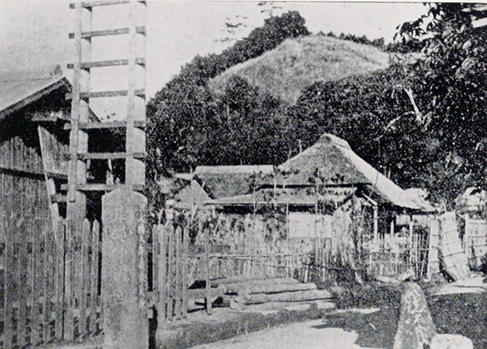 下の写真は明治後期に撮影されたものですが、左手前にあるのが上と同じ「甘縄神明宮」の石標です。隣にあるはずの石鳥居が写っていないのは、この時期には、現在「長谷鎮守 甘縄神明宮」の社号標 が建てられている由比ガ浜通り沿いの参道入口にあったためです。