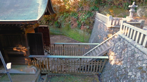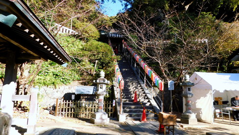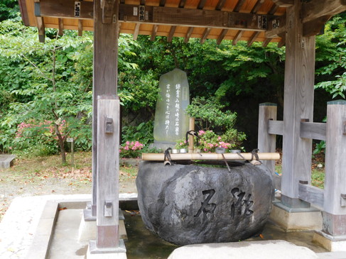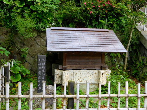 大石段に向かって左手にあるのが「北条時宗公産湯の井」です。元寇を退けた執権として有名な北条時宗は、祖母の松下禅尼が、安達盛長の嫡男・安達景盛の娘であったことから、甘縄神明宮下の安達屋敷で出生しました。