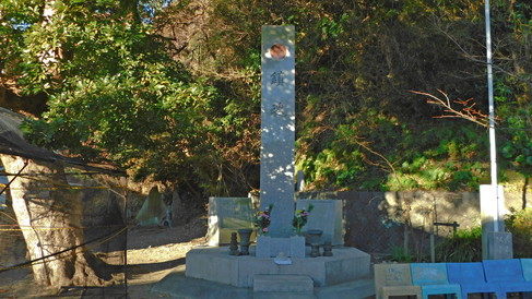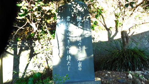 こちらには万葉集より「鎌倉の 見越(みごし)の崎の 石崩(いはくえ)の 君が悔ゆべき 心は持たじ」の歌が刻まれています。万葉集が詠まれた頃には、このあたりまで海岸が迫っていたようです。そもそも「甘縄」という地名も、海と関係のある「海士(海女)」と「漁網」を意味すると云われています。