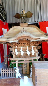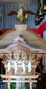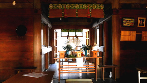 この写真は、正月に撮影したため、拝殿の背後の扉が開け放たれています。