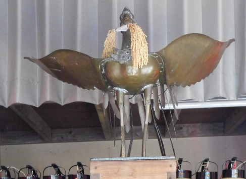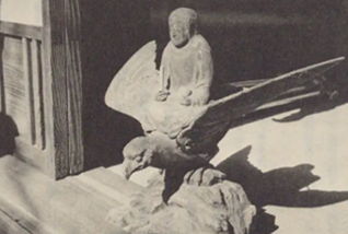 さらに時忠を廻っては、三歳の娘が大鷲に攫われて、食べられてしまったという悲しい物語も伝わります。時忠は、鎌倉中をさがしまわり散らばった肉片・骨片を見つけては、そこに供養塔を建てたそうで、その場所は「塔の辻」と呼ばれるようになりました。かつては7カ所あったそうですが、現在では笹目郵便局のそばに唯一石塔が残っています。また円覚寺の裏山の六国見山で娘の亡骸を見つけたことから「稚児の墓」が建てられ今もお参りできます。下の写真は、時忠の娘が大鷲に乗る「おとりさま」像で、境内に大鳥神社(鷲の宮)を祀る松葉ケ谷の妙法寺に伝わります。