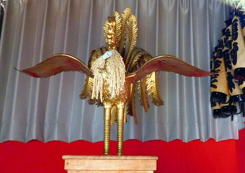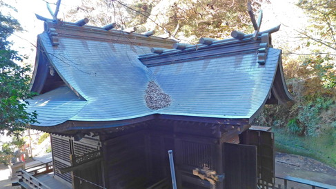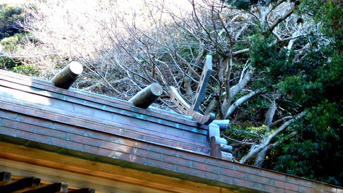 天照大神は女神であるはずですが、不思議なことに伊勢神宮と同じく千木は男神を表す外削になっています。これが、天照大神男神説の根拠の一つとなっています。