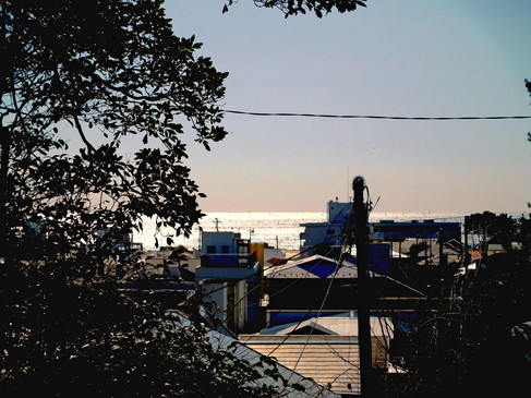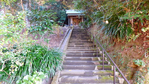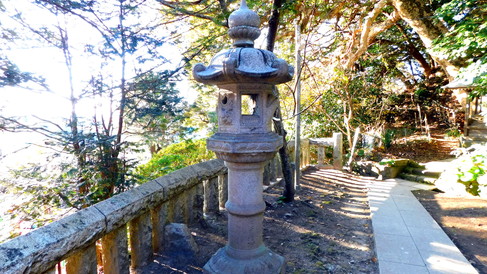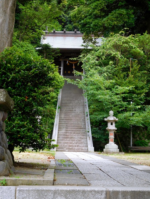 大石段の上からは、海岸が遠くなってしまった現在でも、由比ガ浜の沖が見渡せます。