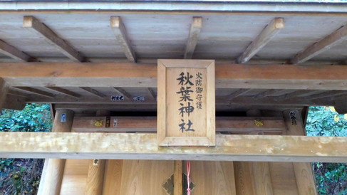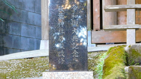 こちらが、防災の神様・秋葉神社です。最近階段の補修が行われたようで、小さな記念碑が立っています。