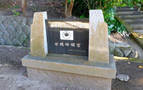 こちらは明治42年(1909年)に長谷の有志により奉納された石標で、元神奈川県知事の沖守固男爵の書です。「甘縄神明宮 源義家朝臣再建」とあります。源頼義公が甘縄神明宮に祈願したところ嫡男の義家公が生まれたことから、康平六年(1063年)に当社を修復し、義家公自身もまた永保元年(1081年)に当社を再建しました。