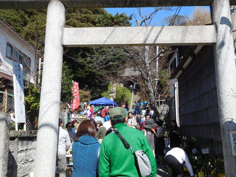 「長谷の市」は、毎年4月と10月に長谷の門前商店街が主催するイベントです。甘縄神明神社境内は、朝市の会場となります。