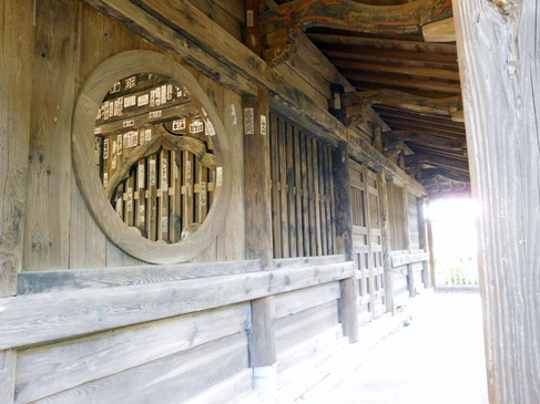 ご本堂側面からの写真です。丸窓の中に正面の火灯窓が見えています。なんとなく不思議な構図です。