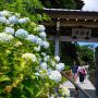 ◎遠くに由比ヶ浜を望む東北参道に今も残る色とりどりの紫陽花